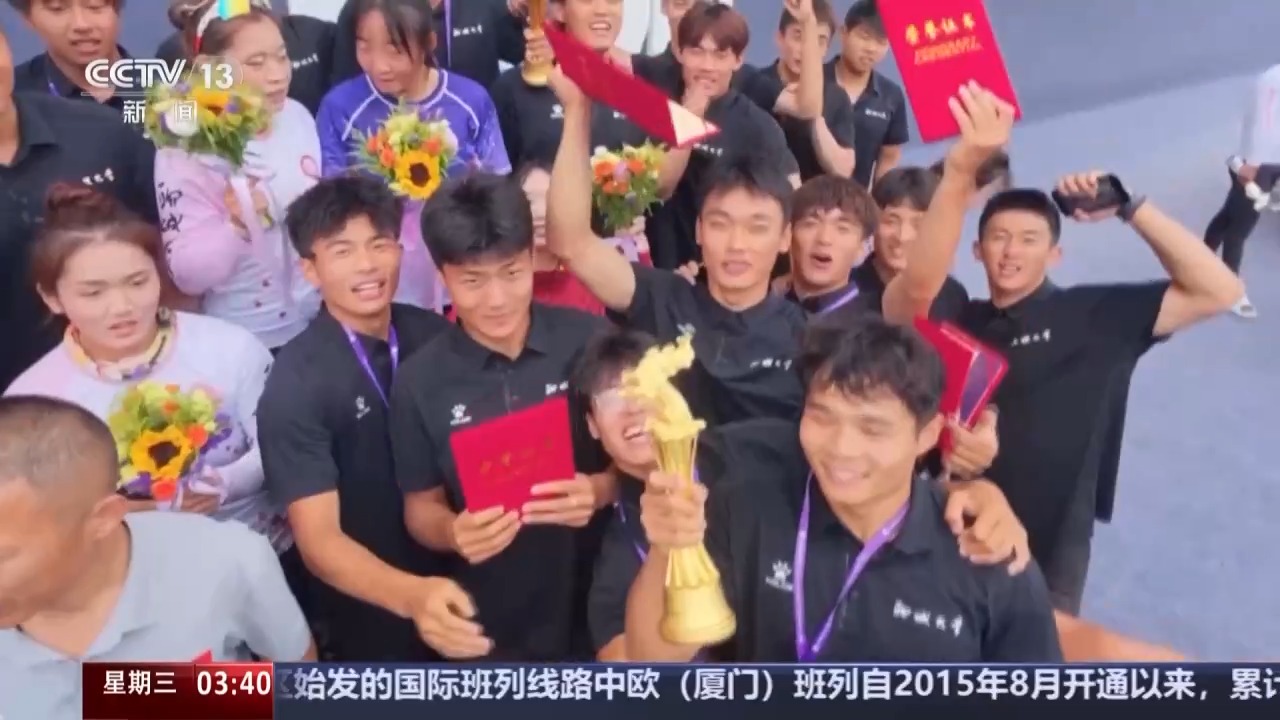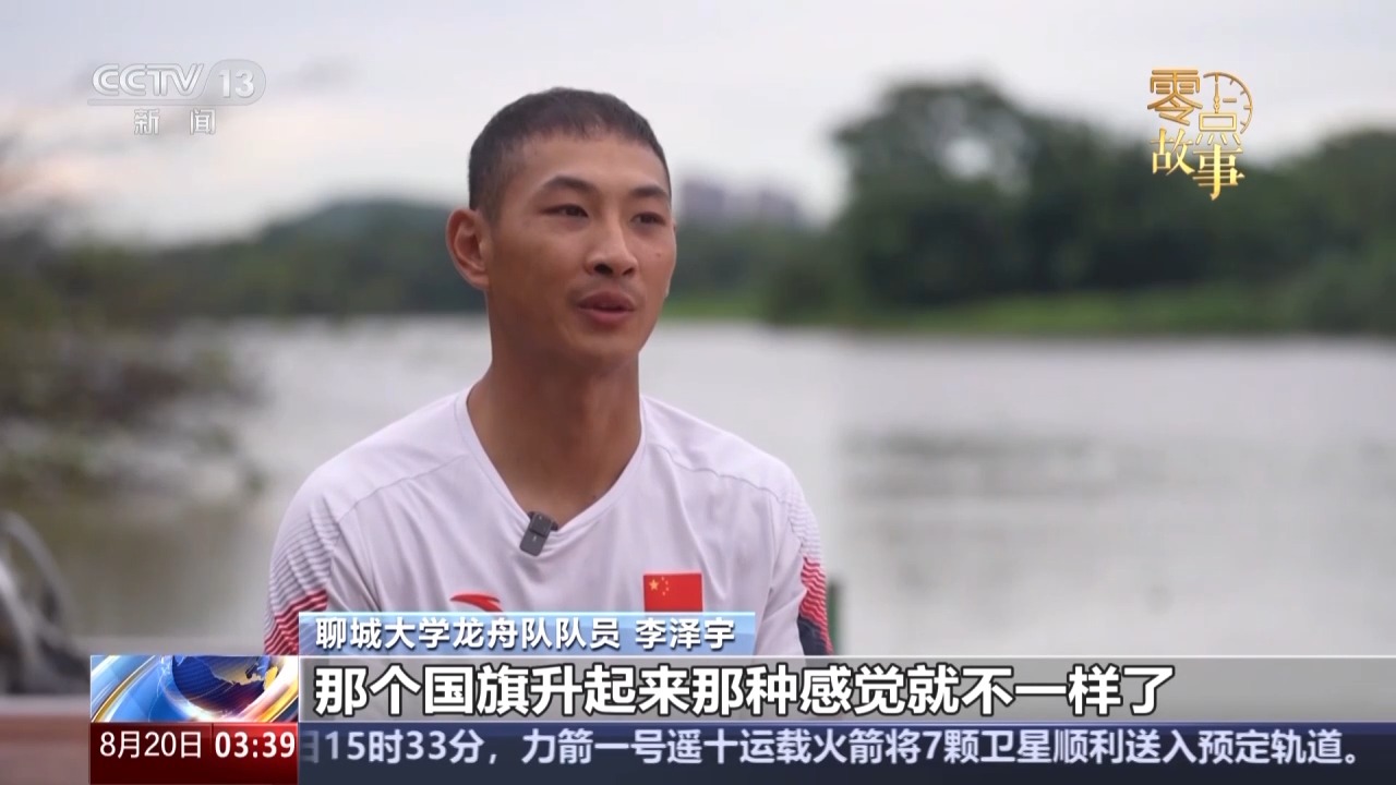 聊城大学龙舟队队员 李泽宇:拿到第一块奖牌的时候,国旗升起来那种感觉就不一样了,那时候就欢呼不出来了,自己内心里边五味杂陈的感觉。然后一起唱国歌,就感觉自己代表国家能升一次国旗,比较自豪,感觉足矣了。