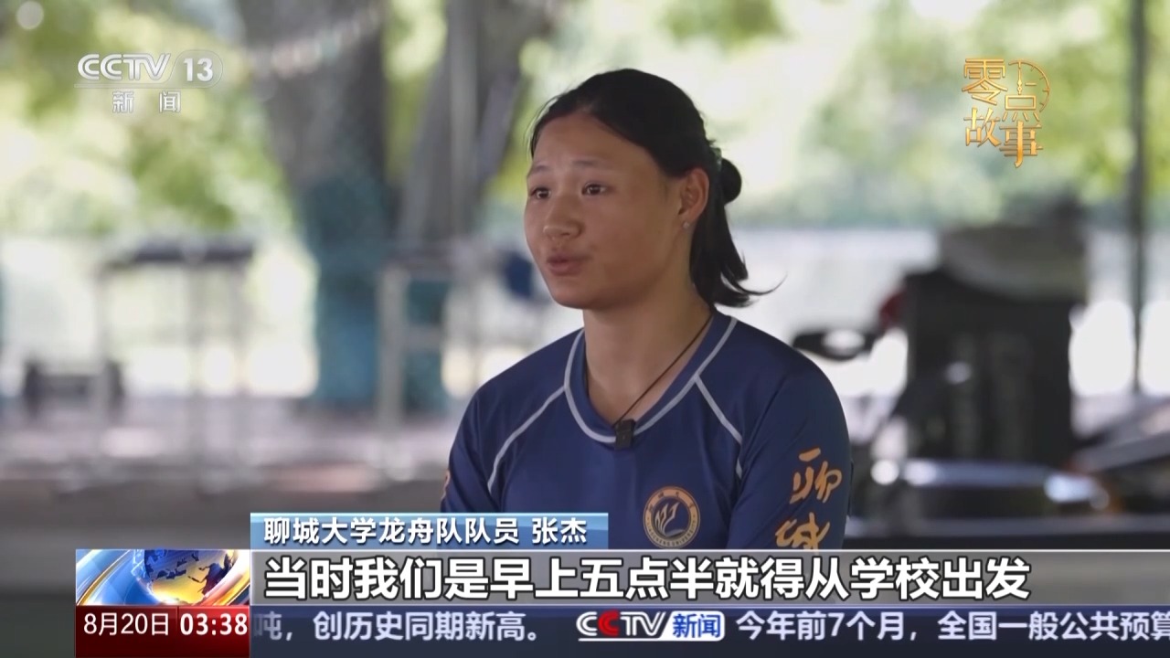 聊城大学龙舟队队员 张杰:当时我们早上五点半就得从学校出发去训练。我们上课是有早八的,早八之前赶回去,湿着衣服就要进教室。
